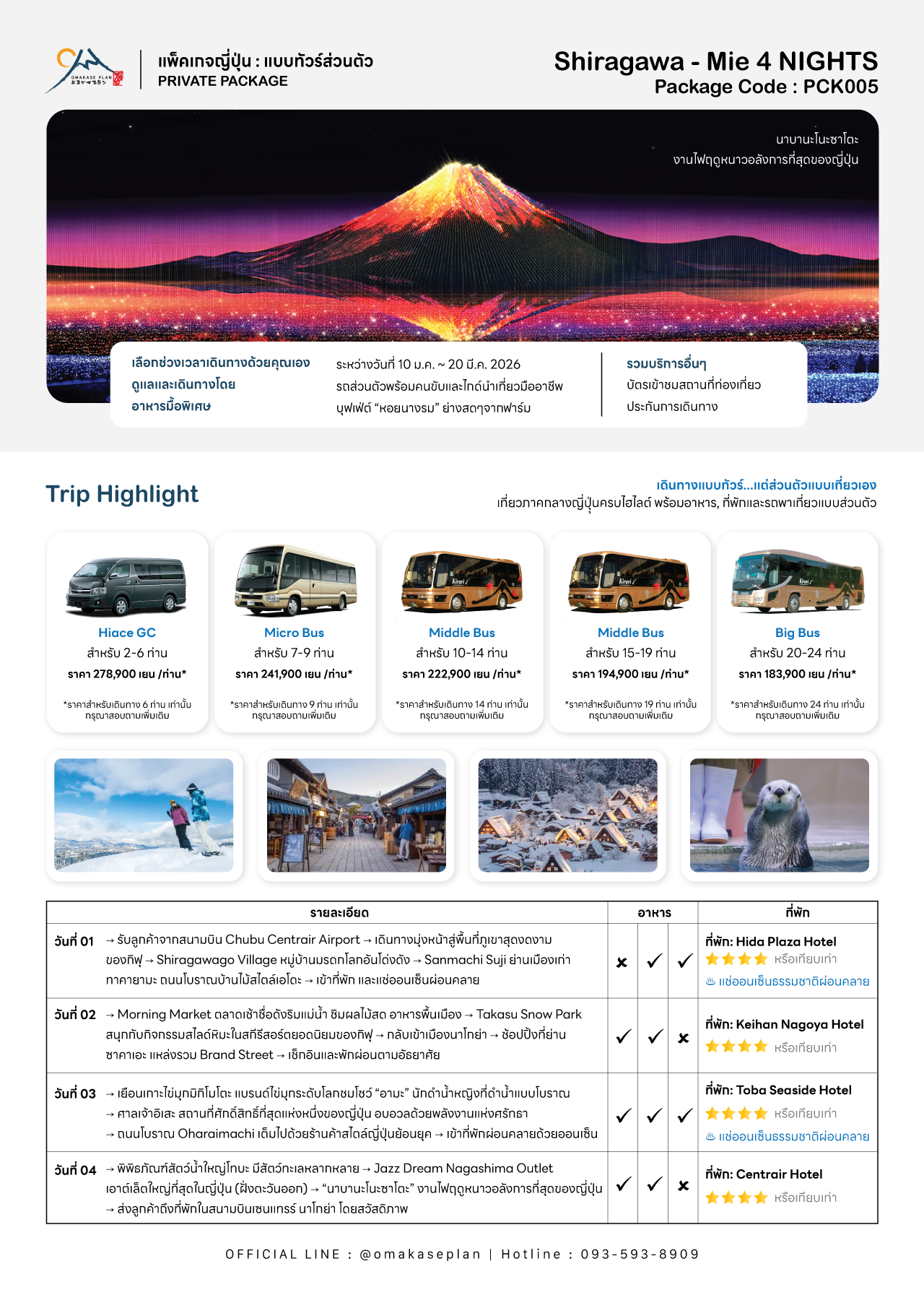 🗓 TOUR ITINERARY – NAGOYA – TAKAYAMA – MIE – ISE – NABANA NO SATO (4 DAYS)