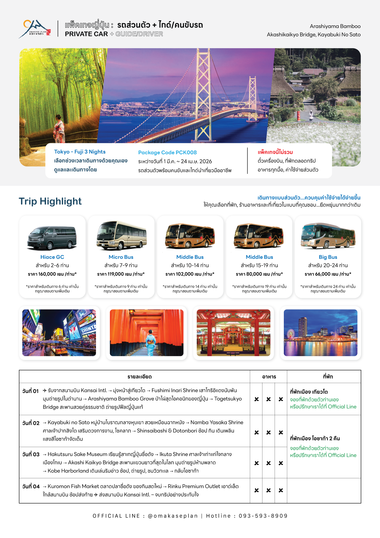 **โปรดทราบว่า ราคาข้างต้นอาจมีการเปลี่ยนแปลงในช่วงเทศกาล หรือ วันหยุดต่อเนื่อง/วันหยุดยาว ฯลฯ